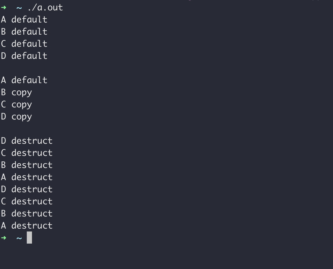 C::C(const C& c) : A(c) { cout << "C copy" << endl; }